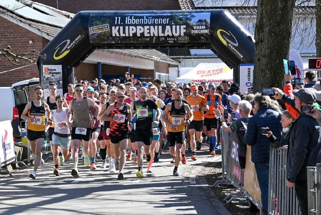 Beim 11. Ibbenbürener Klippenlauf gab es nicht nur sportliche Höchstleistungen und Rekorde, sondern auch eine beeindruckende Teilnehmerzahl, die alle Erwartungen übertraf. Die Veranstaltung zog Läufer aus der Region und den Niederlanden an. Der 11. Klippenlauf des Ausdauersportvereins Marathon Ibbenbüren am Samstag bot so einiges an Rekorden – und das nicht nur in Bezug auf die sportlichen Bestleistungen in den beiden Läufen über 12,4 und 24,7 Kilometer. Bereits im Vorfeld deutete sich eine starke Beteiligung an, doch am Ende übertraf die Zahl der Finisher alle Erwartungen: Klippenlauf-Organisator Rainer Rottmann und sein Team freuten sich über 1.179 Läuferinnen und Läufer im Ziel, rund 120 mehr als im Vorjahr. Gut 650 Teilnehmende starteten im Hauptlauf, während der Rest den kürzeren Jedermannlauf bestritt. „So wenig Rückzieher wie in diesem Jahr hatten wir noch nie“, betonte Rottmann. Ein Grund dafür waren die ebenfalls rekordverdächtigen Witterungsbedingungen: Sonnige 13 Grad sorgten für optimales Laufwetter, und auch die Strecken präsentierten sich wegen der Trockenheit im Vorfeld von ihrer besten Seite. „Bessere Bodenverhältnisse als heute kannst du nicht kriegen“, so Rottmann. Besonders stark vertreten waren in diesem Jahr die Läuferinnen und Läufer aus den Niederlanden. Fast jeder zehnte Aktive kam aus dem Nachbarland. Mit rund 30 Teilnehmern stellte erneut der A.S.V. Athletics aus Ibbenbürens Partnerstadt Hellendoorn eine große Gruppe. Insgesamt waren 15 Teams aus den Niederlanden am Start, darunter der HAC‘63 und das Team „Kronos“ mit Studierenden der Universität Enschede. Der teilnehmerstärkste Verein kam jedoch aus der Region: Der TV Mettingen schickte 40 Läuferinnen und Läufer ins Rennen. Die sportlichen Highlights setzten die Top-Athleten auf den beiden Klippenlauf-Distanzen. Bei den Männern kam es auf der Langstrecke nicht zum erwarteten Duell zwischen den Niederländern Erwin Akkerman und Eric Leusink vom HAC‘63. Stattdessen sicherte sich mit Jelmer Otten (Kronos) in 1:31:38 Stunden ein anderer Niederländer den Sieg auf der Halbmarathon-Strecke – und stellte damit zugleich einen neuen Streckenrekord auf. Zweiter wurde Erik Leusink (1:34:05 Stunden), gefolgt von Manuel Schweers (MTV Stuttgart Triathlon), Jan Keller (Marathon Ibbenbüren) und Erwin Akkerman auf Platz fünf. Bei den Frauen dominierte Hannah Arlom (Tri Team LG Emsdetten) den Hauptlauf. Sie siegte in 1:49:11 Stunden, vor Chiara Morelli (1:50:05 Stunden) und Marie Bußmann (1:53:53 Stunden). Vorjahressiegerin Kira Konermann (SV Teuto Riesenbeck) kam in 1:55:29 Stunden als Vierte ins Ziel, gefolgt von Anna Schulte (TV Mettingen). Auf der 12,4-Kilometer-Strecke wurde Andreas Bröring (TuS BW Lohne) einmal mehr zum Rekordjäger. Mit einem Start-Ziel-Sieg gewann er nicht nur zum dritten Mal in Folge, sondern stellte – ebenfalls das dritte Mal in Folge – mit seiner Zeit von 45:01 Minuten einen neuen Streckenrekord auf. Mit deutlichem Abstand folgte Maik Lepper (TV Lengerich) in 46:23 Minuten. Die Läufer des SV Teuto Riesenbeck, Eike Henning Meyer und Jörg Jäger, belegten die Plätze fünf und acht. Bei den Frauen war Anna Kamp (TV Mettingen) am Samstag das Maß der Dinge. Bei ihrer Klippenlauf-Premiere siegte die Lokalmatadorin in 54:38 Minuten vor Anika Fels (LSF Münster, 55:59 Minuten) und Caroline Lietz (TV Hohne, 56:43 Minuten). Beim 11. Ibbenbürener Klippenlauf sorgten aber nicht nur das Wetter und die Leistungen der Aktiven für Begeisterung – auch die Organisation war einmal mehr erstklassig. Gefühlt waren wieder alle Marathonis auf den Beinen, um das Event zu unterstützen. Nach einigen Jahren, in denen es „hier und da auch mal hakte“, sei diesmal alles reibungslos gelaufen. „Und das trotz der Rekordbeteiligung“, freute sich Rainer Rottmann. Auch Hauptlauf-Siegerin Hannah Arlom lobte das Event: „Es ist immer wieder ein tolles Erlebnis, hier zu laufen. Die Organisation ist perfekt und die Stimmung an vielen Streckenpunkten einfach mega.“ Text und Bild: Holger Luck
