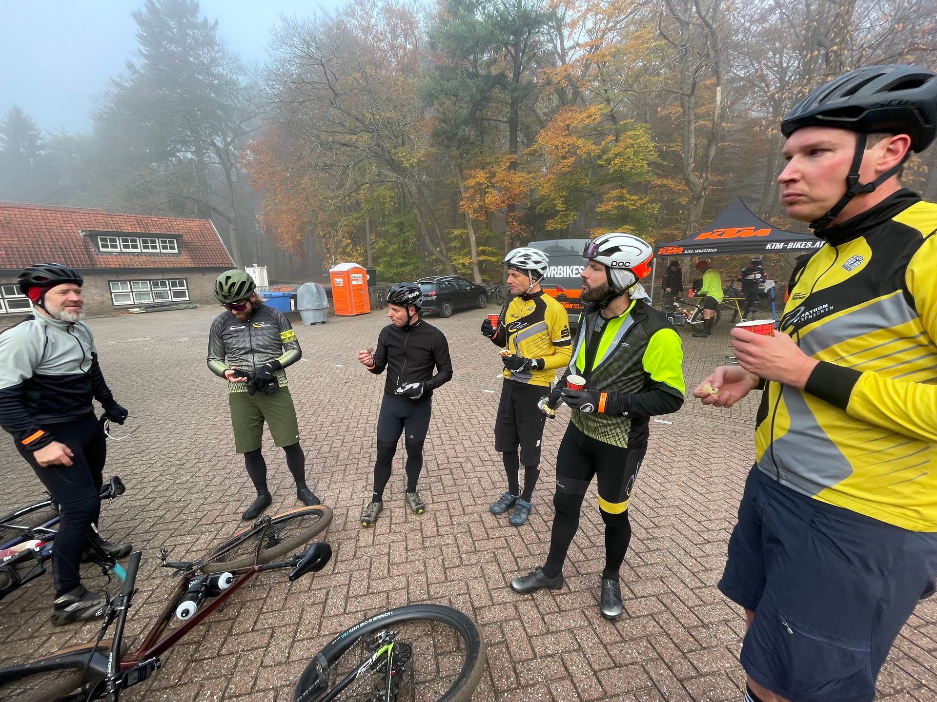 Am 8. November 2025 machten sich sieben Mountainbiker vom Marathon Ibbenbüren auf den Weg zu unseren Nachbarn in die Niederlande – genauer gesagt zur VolkerWessels-Voskamp Holterberg ATB Tour in Nijverdal. Dort standen zwei Strecken zur Auswahl: 35 km und 55 km.