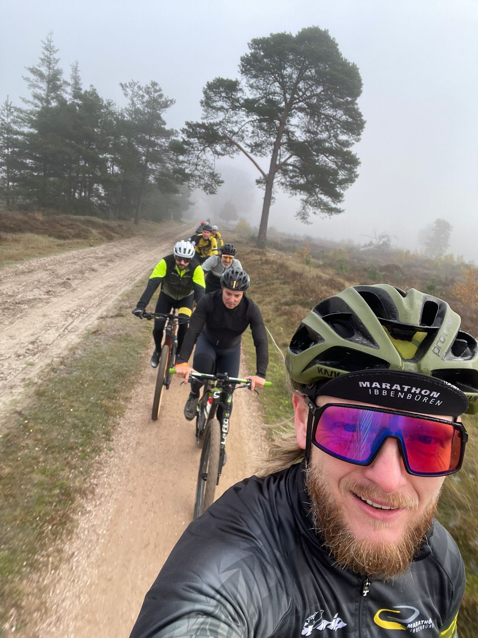 Bei kühlen 6 Grad und Nebel absolvierten alle Fahrer von Marathon Ibbenbüren gemeinsam die 55-km-Runde, die mit 480 Höhenmetern zu Buche schlug. Die Strecke führte überwiegend durch Wälder, in denen sich ein Trail an den nächsten reihte – die Biker kamen aus dem Grinsen gar nicht mehr heraus!